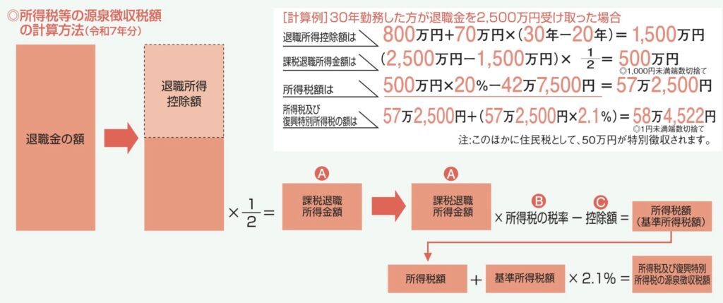 [計算例]30年勤務した方が退職金を2,500万円受け取った場合